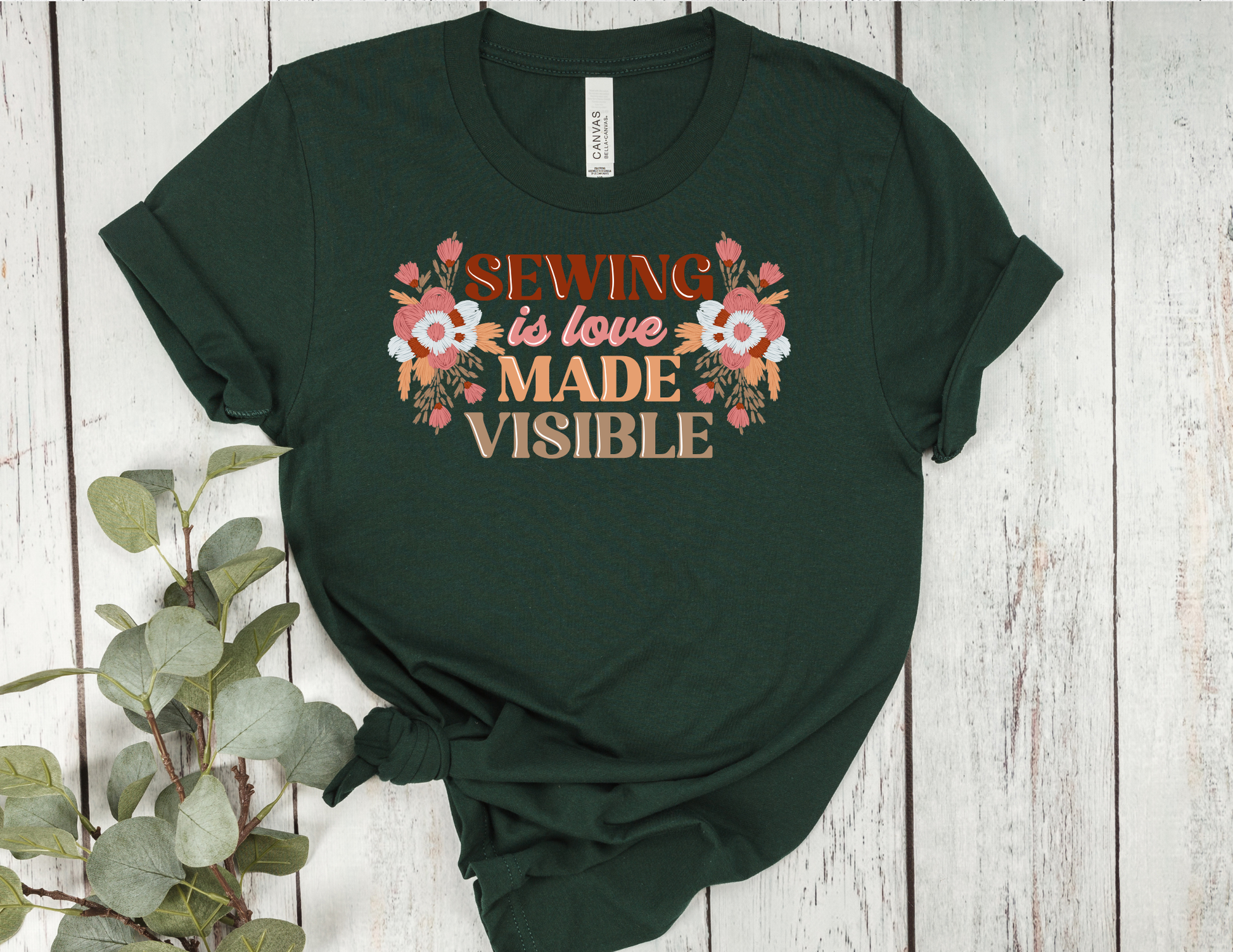 Sewing Is Love Made Visible T-Shirt | Floral Sewing Quote Tee